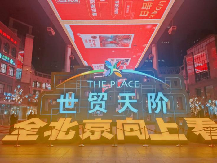 “全北京向上看”,是世贸天阶的一句广告语、一个暗语,一种集体行为。世贸天阶位于北京朝阳区CBD商圈,由南北两区购物中心和两座5A写字楼组成,最大的特点是广场上的巨幅天幕。