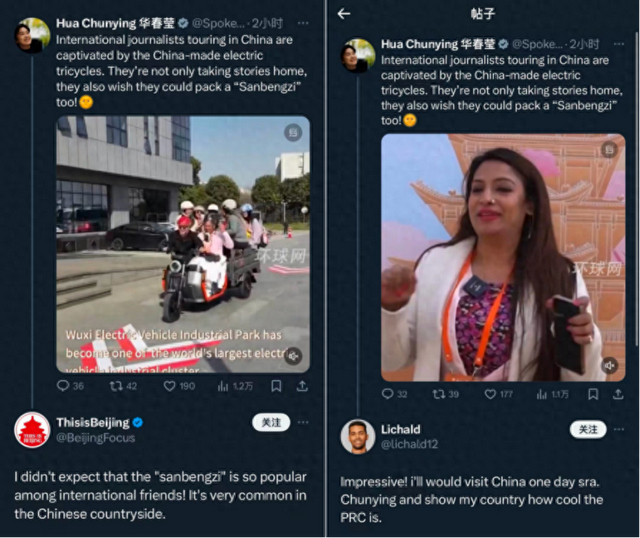 华春莹女士在推文中表示,国际记者们被中国制造的电动车深深吸引,他们不仅将这些故事带回家,还表达了希望将中国的电动车产品带回家的愿望。