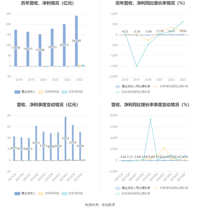 数据显示,2023年公司加权平均净资产收益率为13.49%,较上年同期增长8.53个百分点;公司2023年投入资本回报率为8.82%,较上年同期增长6.40个百分点。