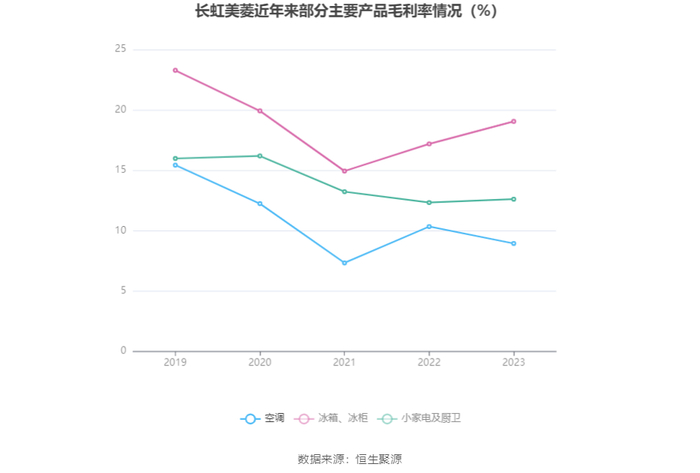 分产品看,空调、冰箱、冰柜、小家电及厨卫2023年毛利率分别为8.94%、19.05%、12.61%。