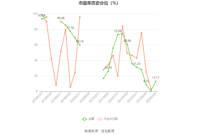 市盈率为负时,不显示当期分位数,会导致折线图中断。