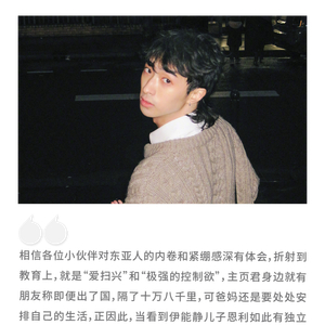 学业上,他天赋异禀,成绩优异。雅思八分,作词、作曲、绘画、跳舞、服装设计样样都会。曾同时收到过纽约帕森斯、伦敦中央圣马丁、纽约大学Tisch三所顶尖艺术学校的offer,今年22岁,已经从纽约大学(NYU)提前毕业。