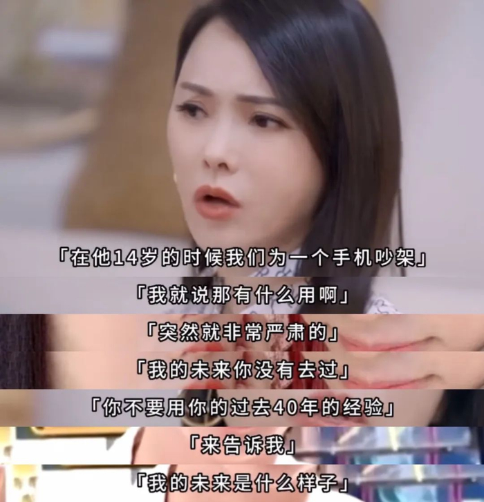 和恩利的两次争执,让她对亲子关系有了新的感悟。第一次,恩利上学时想要一部智能手机,但伊能静不解,她当下的反应是:要这个有什么用啊,我们上学那时候都没有。