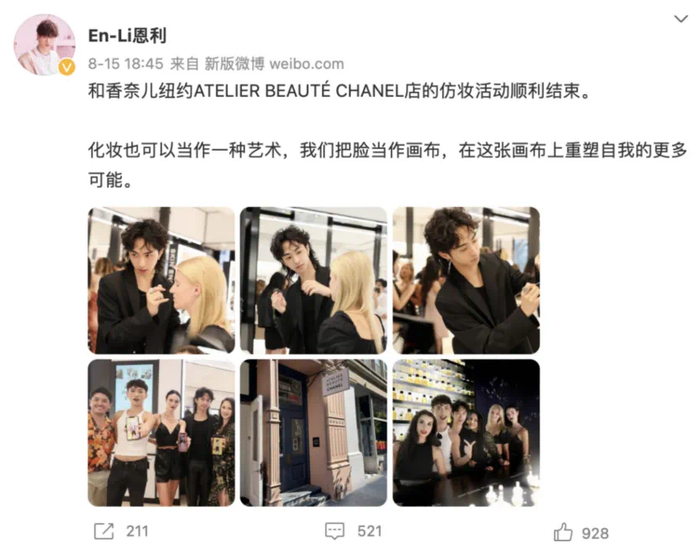 事业上,他未来可期。他曾以「TNE中性彩妆创始人兼主理人」的身份,在香奈儿纽约ATELIERBEAUTÉ CHANEL店合作仿妆活动。