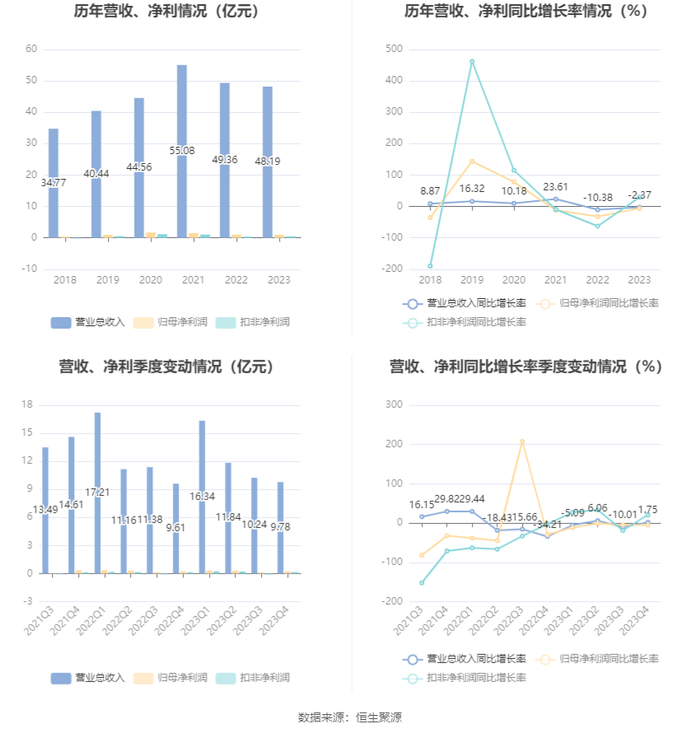 数据显示,2023年公司加权平均净资产收益率为3.11%,较上年同期下降0.26个百分点;公司2023年投入资本回报率为1.82%,较上年同期下降0.45个百分点。
