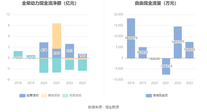 2023年,公司经营活动现金流净额为1.20亿元,同比下降69.25%;筹资活动现金流净额-4034.96万元,同比增加1075.57万元;投资活动现金流净额-3.12亿元,上年同期为-2.76亿元。