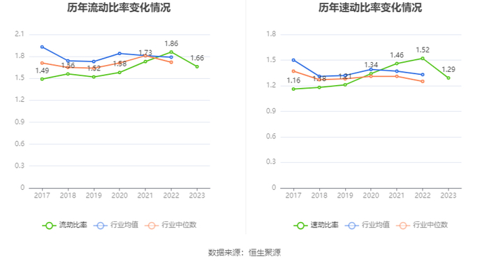 2023年,公司流动比率为1.66,速动比率为1.29。
