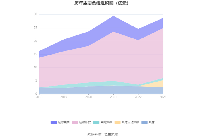 负债重大变化方面,截至2023年年末,公司其他流动负债较上年末增加22088.15%,占公司总资产比重上升4.20个百分点;应付账款较上年末增加11.85%,占公司总资产比重上升0.97个百分点;应付票据较上年末减少8.42%,占公司总资产比重下降1.17个百分点;其他应付款(含利息和股利)较上年末减少59.66%,占公司总资产比重下降0.54个百分点。