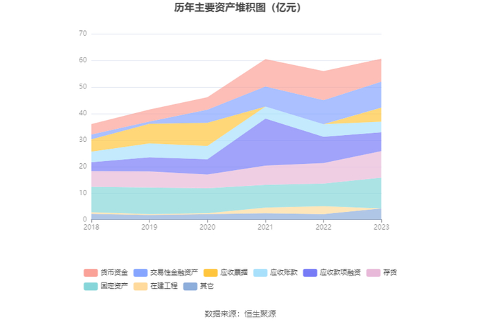 资产重大变化方面,截至2023年年末,公司应收款项融资较上年末减少28.58%,占公司总资产比重下降6.03个百分点;货币资金较上年末减少21.52%,占公司总资产比重下降5.38个百分点;在建工程较上年末减少98.91%,占公司总资产比重下降5.28个百分点;固定资产较上年末增加36.39%,占公司总资产比重上升3.93个百分点。