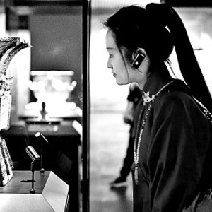 2月26日,参观者在河南安阳殷墟博物馆新馆内观看“亚长”铜方尊。新华社发
