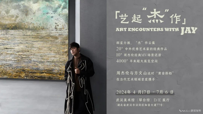 4月17日至7月6日,由周杰伦担任总策展人的展览《艺起“杰”作》,将在武汉美术馆(琴台馆)展出。此次展览含“杰”量极高,展厅内20余位中外艺术家的经典之作,由策展人周杰伦亲自挑选。还能看见周杰伦方文山这对知音再次合作,方文山个人创作的艺术作品,也将在现场展陈。