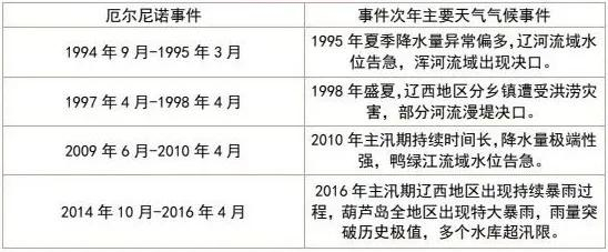 厄尔尼诺事件次年辽宁省主要天气气候事件