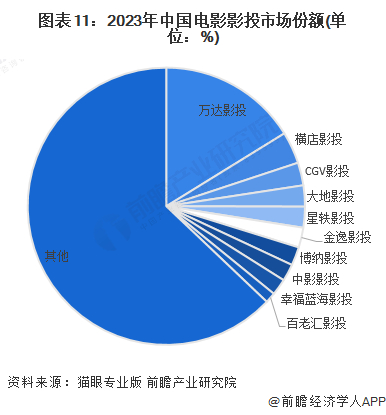 根据猫眼专业版数据统计,2023年,2023年,万达影投票房77.85亿元,同比增加88.18%,市场占有率15.60%;横店影投票房18.04亿元,同比增加90.50%,市场占有率3.61%;CGV影投票房13.46亿元,同比增加109.66%,市场占有率2.70%。