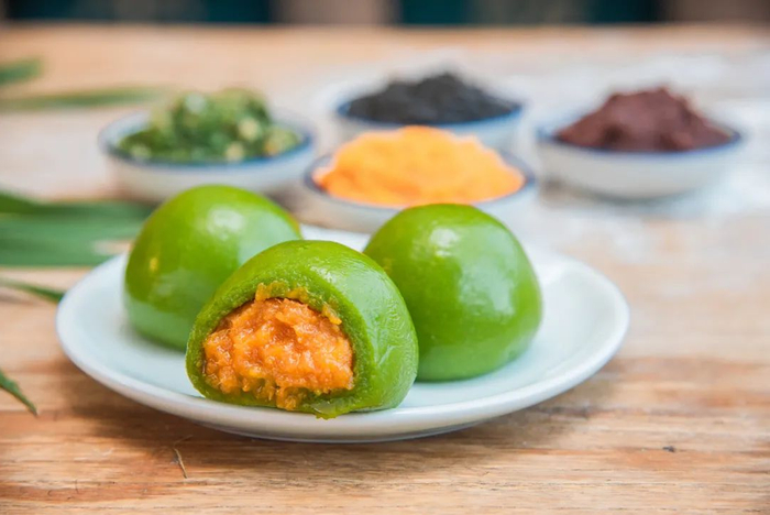 采用传统古法,手工捣碎成嫩绿的麦汁,不添加任何色素,用它做成的青团有着浓郁的麦草清香。