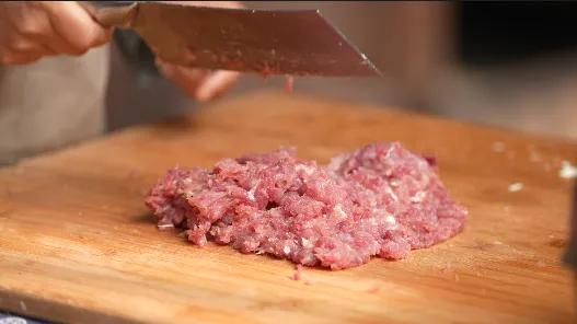 肥肉少、瘦肉多,在人工剁馅时,油脂融到了肉里,油润而不腻,鲜味直接提了一个层次!