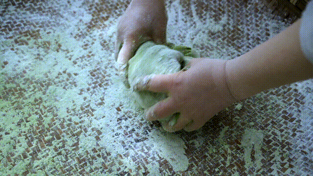 经过半小时不间断地充分揉和,青团皮才能入口软糯有韧性,不粘牙。