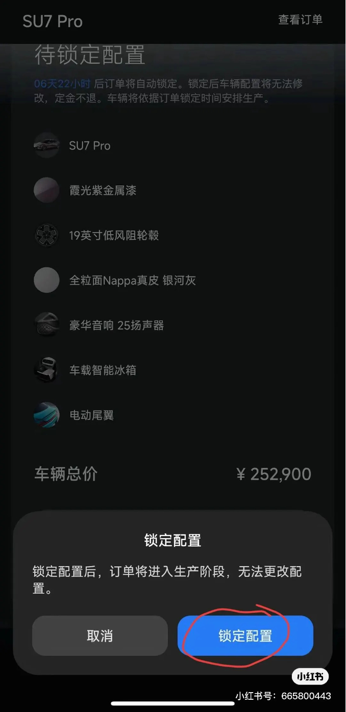而锁定配置,也就是锁单,就意味着决定购买,已经将个性化的汽车配置提交了汽车厂商,厂商根据配置下单生产任务。