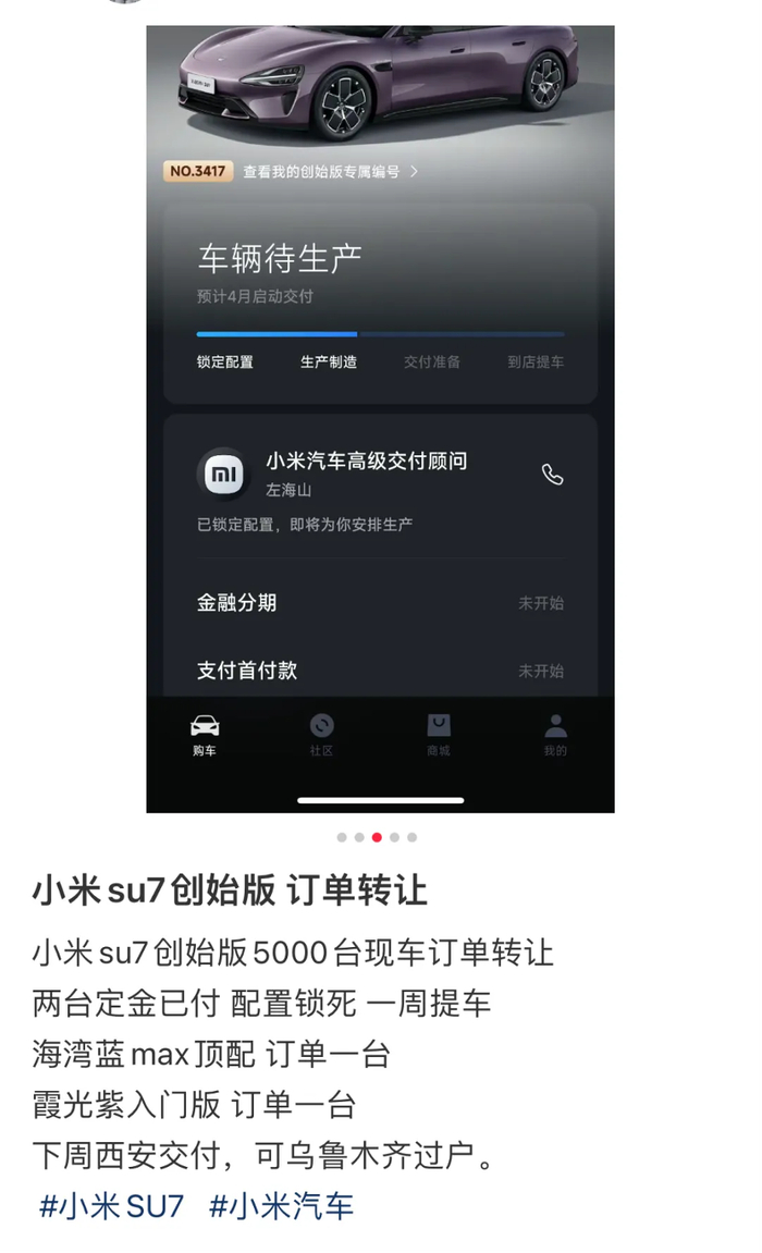 别管是虚荣心驱使激情下单的,还是抖机灵赚钱的,都说明了小米SU7确实太火了,就有点像当年苹果发售时的黄牛们,总是冲在第一线。
