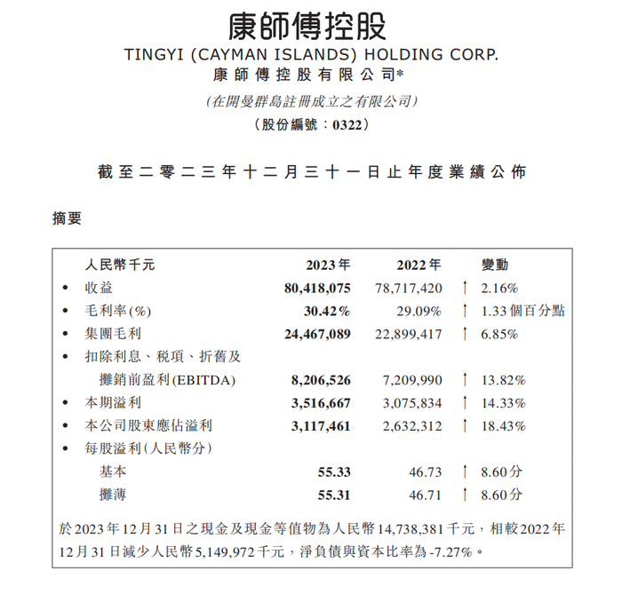 对于这份稳健增长的年度“答卷”, 康师傅表示,主要原因在于2023年国内经济复苏,家外消费需求反弹。