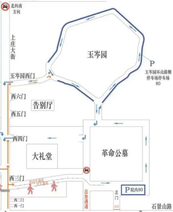 八宝山地区墓地陵园较为集中,交管部门在周边协调开辟多处停车场地;八宝山革命公墓南门封闭,预约祭扫车辆请从西三门进、西四门出,革命公墓内按逆时针方向单向行驶;上庄东街北段至梁公庵路口将适时采取南向北单向行驶临时交通管理措施。