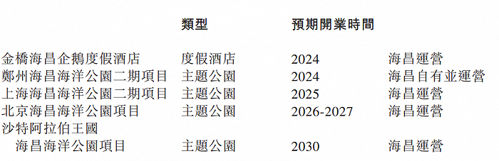展望未来,海昌集团还在财报中公布了未来能见度较高的新项目,但并不保证完全落地。