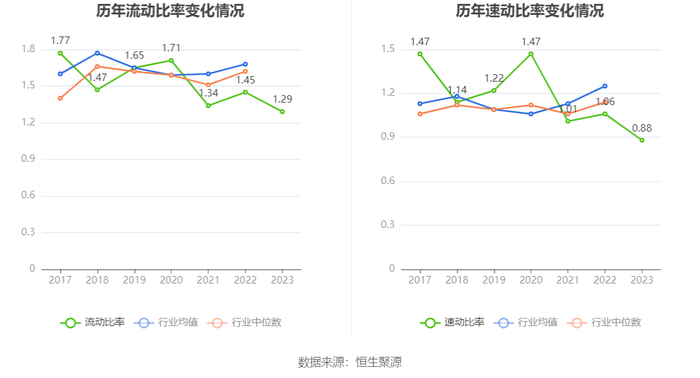 2023年,公司流动比率为1.29,速动比率为0.88。