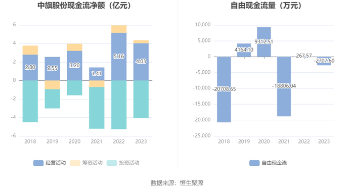 进一步统计发现,2023年公司自由现金流为-2707.60万元,上年同期为267.57万元。