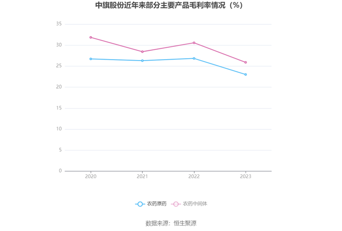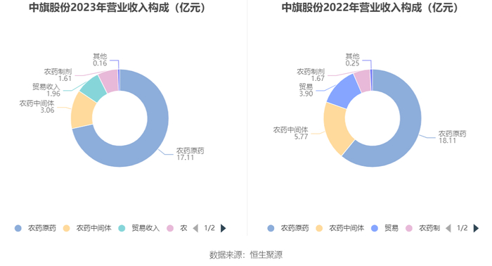 分产品看,农药原药、农药中间体、贸易收入2023年毛利率分别为23.02%、25.91%、12.49%。
