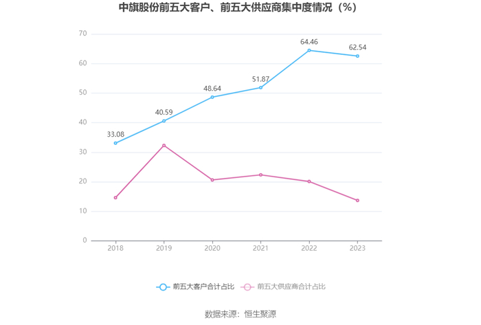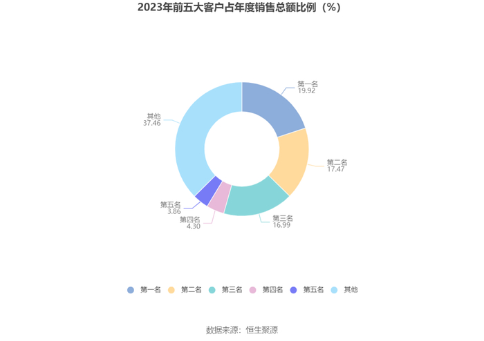 报告期内,公司前五大客户合计销售金额14.95亿元,占总销售金额比例为62.54%,公司前五名供应商合计采购金额1.77亿元,占年度采购总额比例为13.68%。
