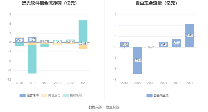 进一步统计发现,2023年公司自由现金流为6.43亿元,相比上年同期增长195.85%。