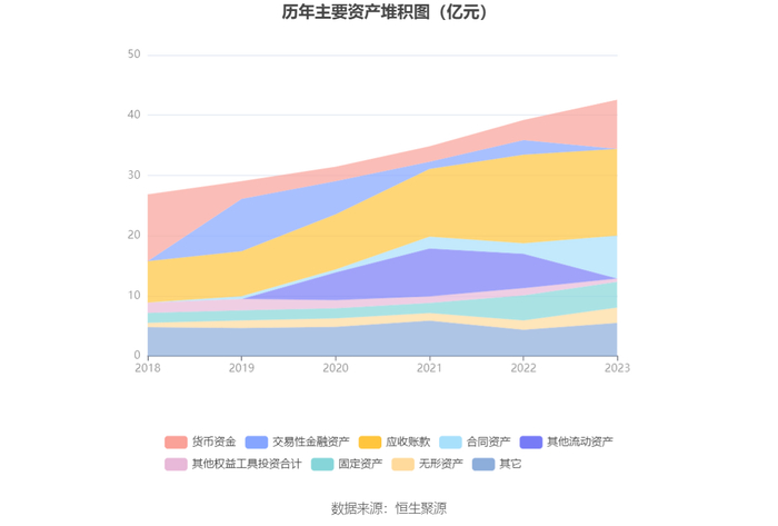 资产重大变化方面,截至2023年年末,公司其他流动资产较上年末减少99.96%,占公司总资产比重下降14.53个百分点;合同资产较上年末增加311.49%,占公司总资产比重上升12.31个百分点;货币资金较上年末增加143.35%,占公司总资产比重上升10.61个百分点;交易性金融资产较上年末减少100.00%,占公司总资产比重下降6.16个百分点。
