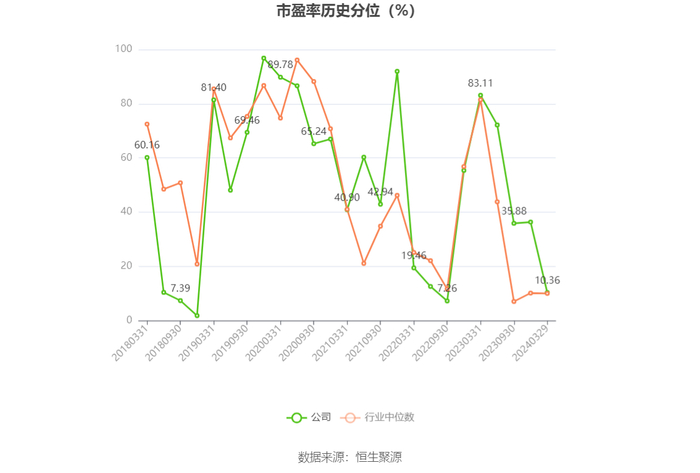 市盈率为负时,不显示当期分位数,会导致折线图中断。