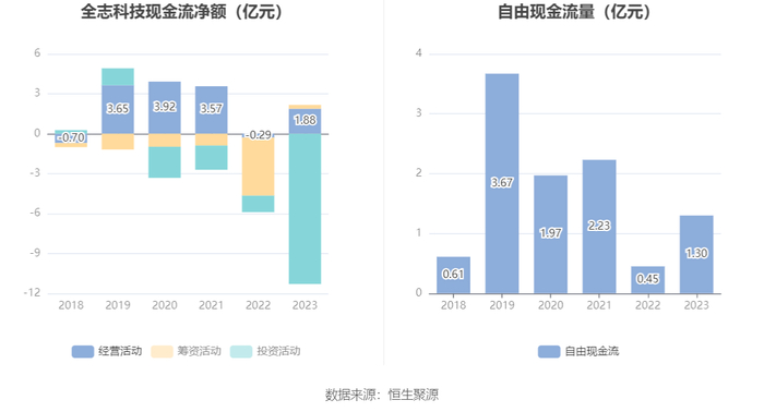 进一步统计发现,2023年公司自由现金流为1.30亿元,相比上年同期增长186.71%。