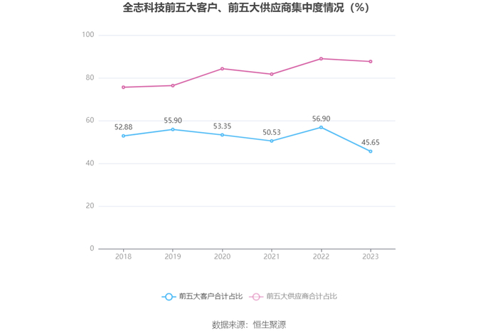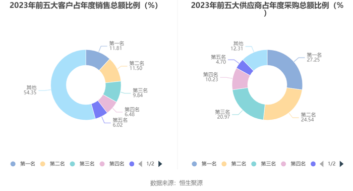 报告期内,公司前五大客户合计销售金额7.64亿元,占总销售金额比例为45.65%,公司前五名供应商合计采购金额8.73亿元,占年度采购总额比例为87.69%。