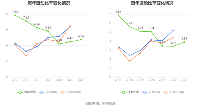 2023年,公司流动比率为4.74,速动比率为3.89。