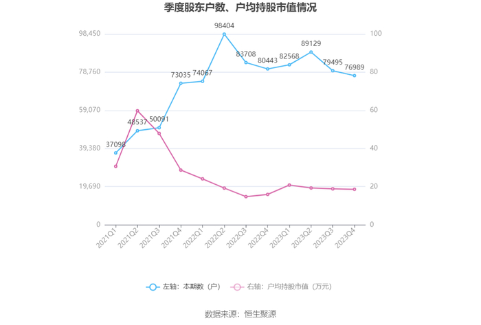筹码集中度方面,截至2023年年末,公司股东总户数为7.7万户,较三季度末下降了2506户,降幅3.15%;户均持股市值由三季度末的18.88万元下降至18.62万元,降幅为1.38%。