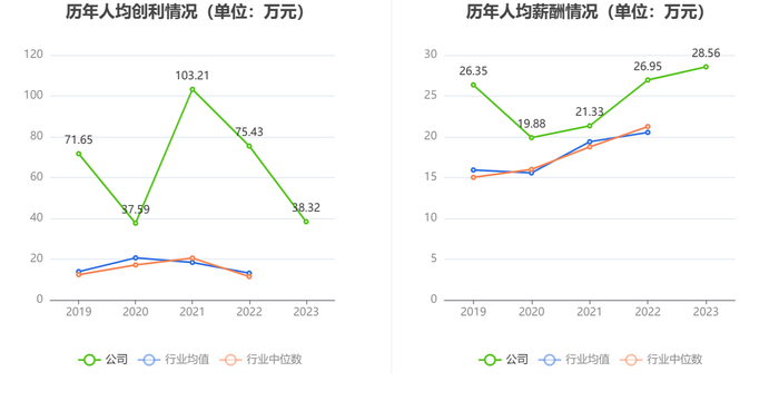 截至2023年末,公司员工总数为208人,同比增加18.18%;人均创收138.15万元,人均创利38.32万元,人均薪酬28.56万元,较上年同期分别变化-12.47%、-49.19%、5.98%。