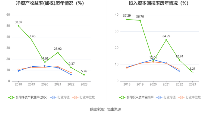 数据显示,2023年公司加权平均净资产收益率为5.76%,较上年同期下降6.61个百分点;公司2023年投入资本回报率为5.23%,较上年同期下降7.51个百分点。