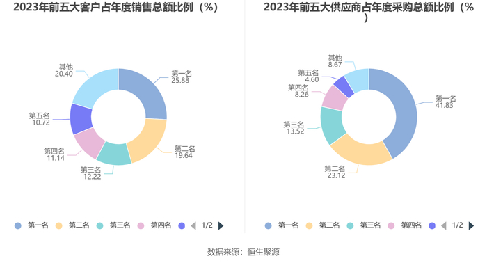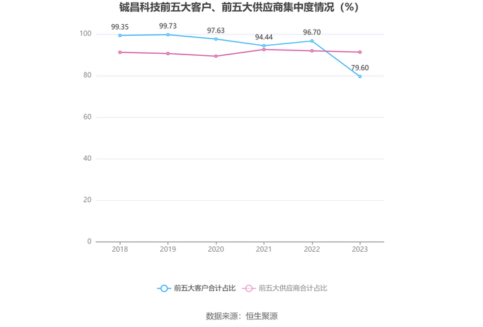 报告期内,公司前五大客户合计销售金额2.29亿元,占总销售金额比例为79.60%,公司前五名供应商合计采购金额1.61亿元,占年度采购总额比例为91.33%。