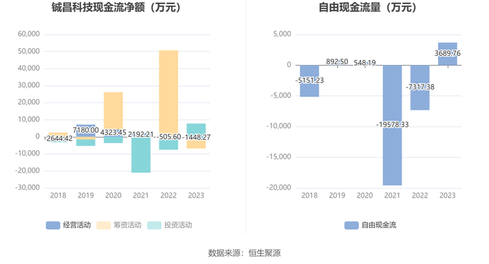 进一步统计发现,2023年公司自由现金流为3689.76万元,上年同期为-7317.38万元。