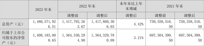 负债重大变化方面,截至2023年年末,公司应付账款较上年末增加176.01%,占公司总资产比重上升1.54个百分点;长期递延收益较上年末增加80.72%,占公司总资产比重上升0.50个百分点;应交税费较上年末减少94.17%,占公司总资产比重下降0.53个百分点;合同负债较上年末减少99.87%,占公司总资产比重下降0.47个百分点。