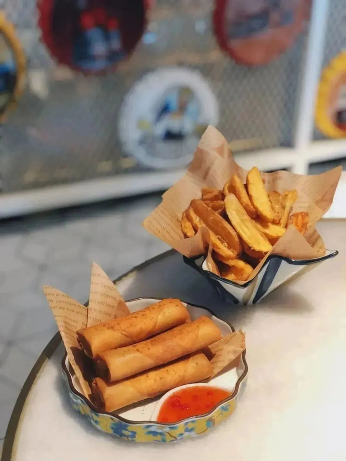 招牌芒果大虾沙拉,牛肉高丽菜奶酪春卷