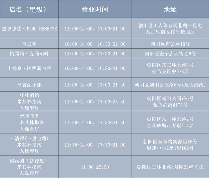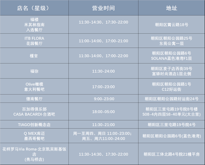 跟随下方列表,寻“味”亮马河