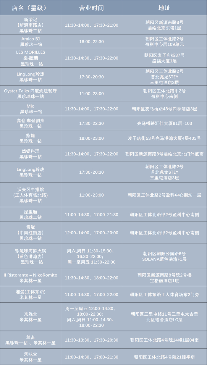 星级(黑珍珠/米其林)餐厅