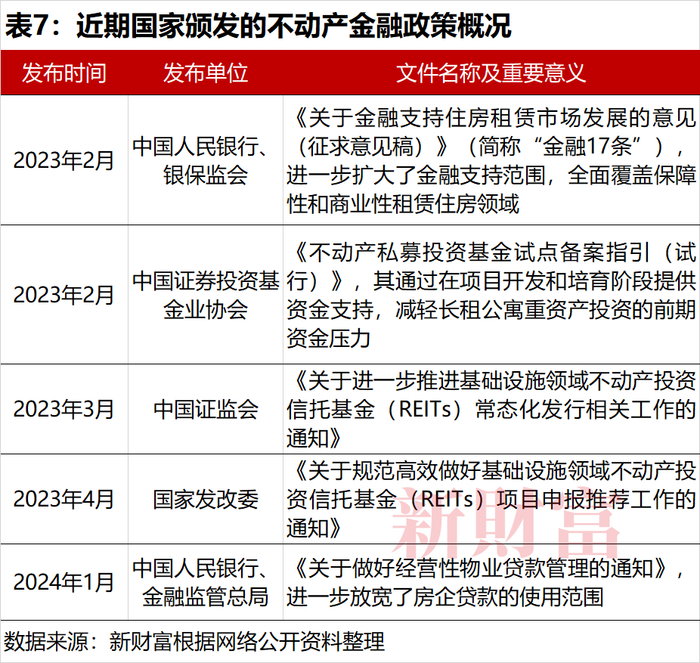 同时,伴随中国房地产行业从增量时代转入存量时代,金融政策的逻辑也在转向——围绕存量资产盘活的融资渠道在拓宽,融资成本在降低,这使得存量资产项目能够“算得过来账”(表7)。