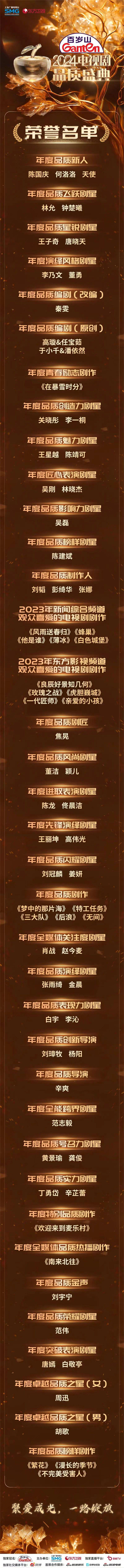据悉,《剧耀东方·2024电视剧品质盛典》由百视TV全程独家直播,完整版节目将于4月6日20:30在东方卫视播出。
