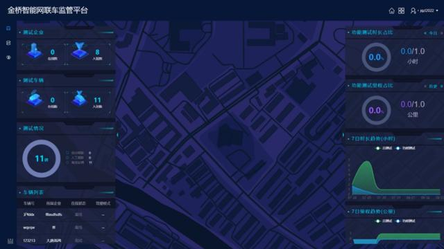 比如,在金桥智联的自动驾驶车辆综合监管平台界面,你能看到所有在测试道路上行驶的车辆都有自己的ID身份,通过5G-A车联网,所有操作产生的一系列数据——测试车辆的车辆型号、实时车速、行驶里程等,统统被保存下来,以监测车子是否在规定区域内,或通过车子人工接管率的统计分析,了解企业技术的成熟度。
