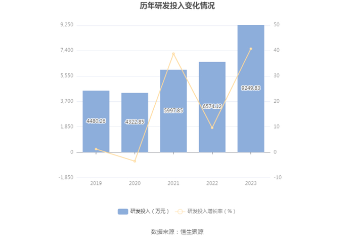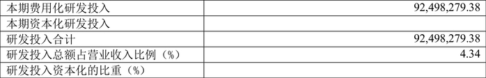 2023年全年,公司研发投入金额为9249.83万元,同比增长40.70%;研发投入占营业收入比例为4.34%,相比上年同期上升0.88个百分点。此外,公司全年研发投入资本化率为0。