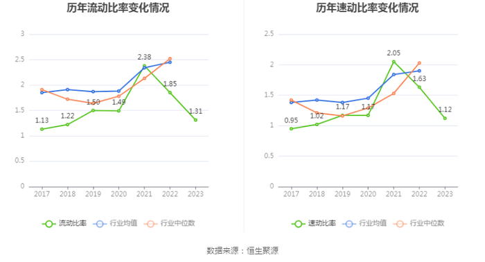 2023年,公司流动比率为1.31,速动比率为1.12。
