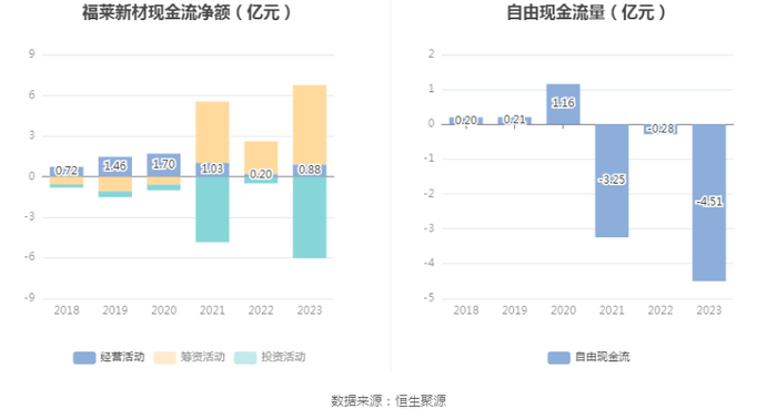 进一步统计发现,2023年公司自由现金流为-4.51亿元,上年同期为-0.28亿元。